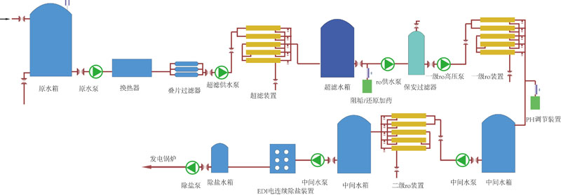 為有效防止和減少鍋爐結(jié)垢、腐蝕及其蒸汽質(zhì)量惡化而造成的事故,有利于促進(jìn)機(jī)組的平穩(wěn)、可靠運(yùn)行,需要對(duì)補(bǔ)給水進(jìn)行處理,通常采用離子交換和膜法進(jìn)行處理。