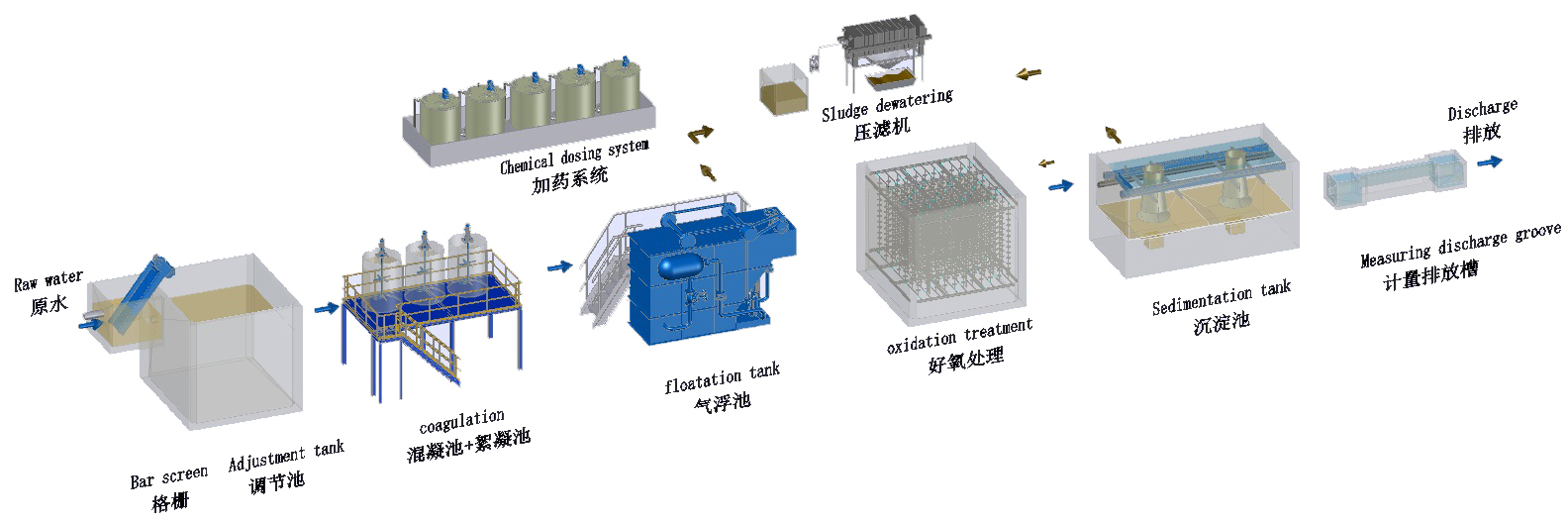 2.部分可溶性油脂也會引起生物系統中毒,采用混凝氣浮工藝進行分離。